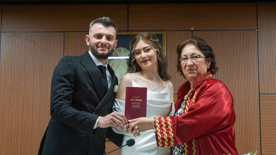 Bu çiftler arasında bulunan Sude Adar ile Oktay Yıldız da nikah masasına oturarak "Evet" dedi.