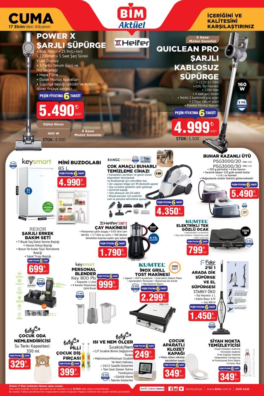 BİM'in 17 Ekim 2025 Cuma tarihli Aktüel Kataloğu, teknolojik ev aletlerinden otomobil aksesuarlarına, bebek ürünlerinden mutfak gereçlerine kadar geniş bir yelpazede ürünlerle dikkat çekiyor.