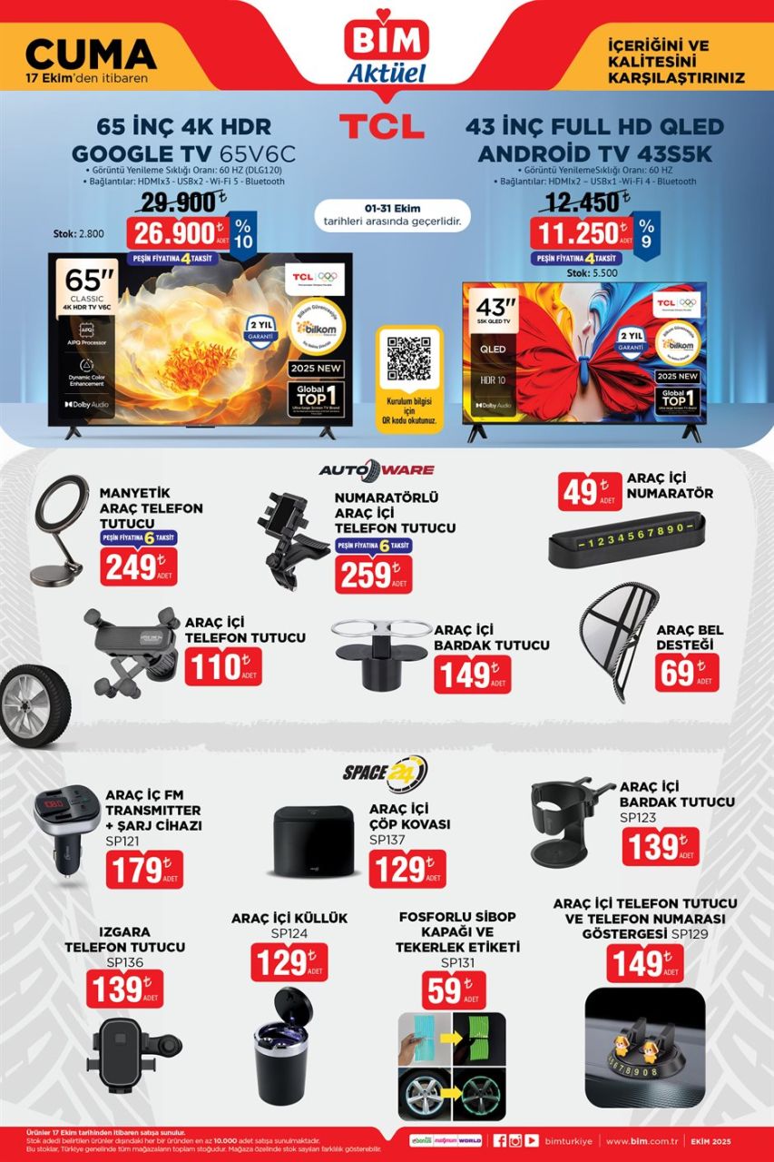 BİM'in 17 Ekim 2025 Cuma tarihli Aktüel Kataloğu, teknolojik ev aletlerinden otomobil aksesuarlarına, bebek ürünlerinden mutfak gereçlerine kadar geniş bir yelpazede ürünlerle dikkat çekiyor.