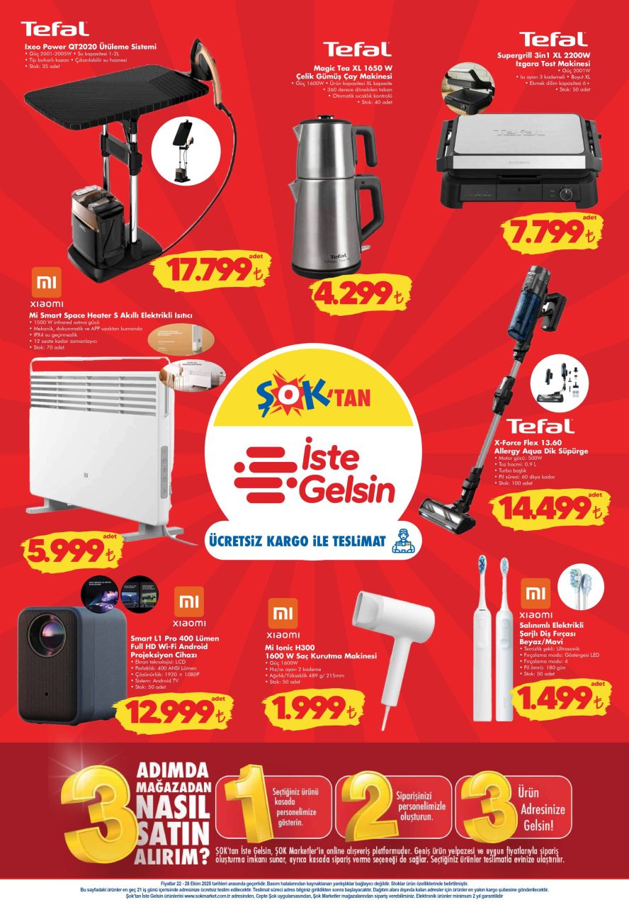 ŞOK Market’in 22-28 Ekim 2025 aktüel ürünler kataloğu yayımlandı. Bu hafta Arzum Dikey Süpürge, Xiaomi Projeksiyon Cihazı ve mutfak gereçlerinde dikkat çekici indirimler öne çıkıyor. Gıda ve temizlik ürünleri de avantajlı fiyatlarla raflarda yer alıyor.