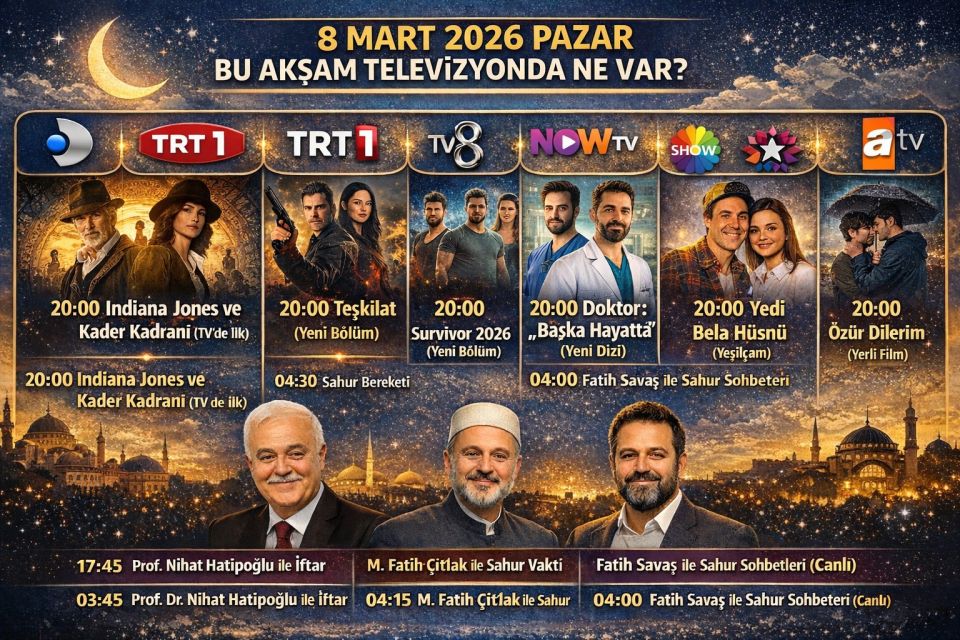 keyfinizi planlamanıza yardımcı olacak 08 Mart 2026 Pazar TV