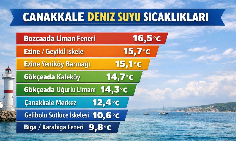 Çanakkale ve ilçelerinde 10–11 Şubat tarihlerinde yapılan ölçümler, deniz suyu sıcaklıklarında bölgesel farklılıkları ortaya koydu. Kıyı ve ada noktalarında gerçekleştirilen ölçümlerde, sıcaklık değerlerinin özellikle adalar çevresinde daha yüksek seyrettiği görüldü.