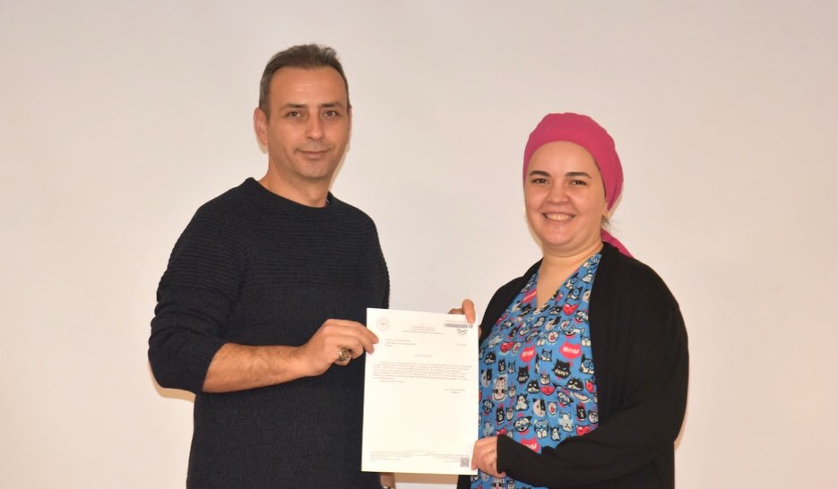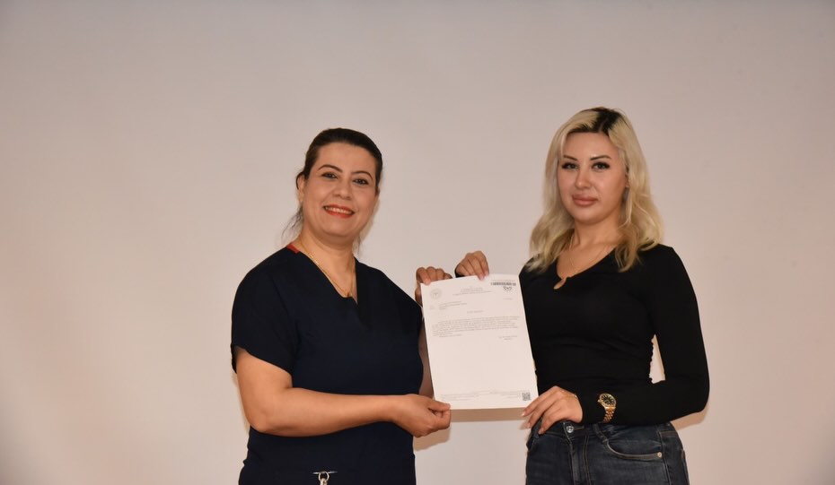 Programı başarıyla tamamlayan kursiyerlere sertifikaları; Başhekim Op. Dr. Hasan Keser, Başhekim Yardımcısı Uz. Dr. Yener Tutaş, Sağlık Bakım Hizmetleri Müdürü Sibel Yiğit, SBHBS Uğur Erduran ve Program Sorumlusu Sefaye Arslan tarafından takdim edildi.
