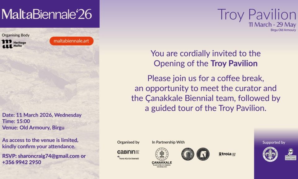 Çanakkale İl Kültür ve Turizm Müdürlüğü’nün paylaştığı bilgilere göre; Çanakkale Bienali imzası taşıyan "Troya Pavyonu", 11 Mart – 29 Mayıs 2026 tarihleri arasında Malta’nın tarihi mekanı Old Armoury Birgu’da sanatseverleri ağırlayacak.