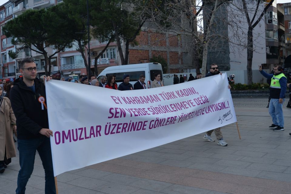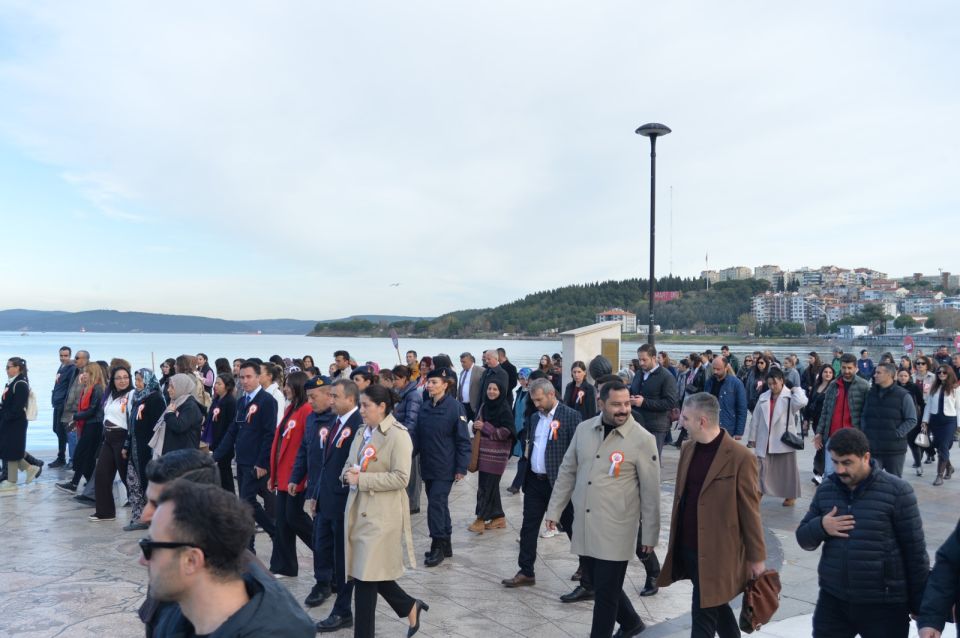 Program kapsamında düzenlenen “Kadına Saygı Yürüyüşü”, Kordon bölgesindeki Golf Çay Bahçesi önünden başlayarak Truva Atı önünde son buldu. Vatandaşların, kurum temsilcilerinin ve kamu görevlilerinin katıldığı yürüyüş, toplumun her kesiminde farkındalık oluşturmayı amaçladı.