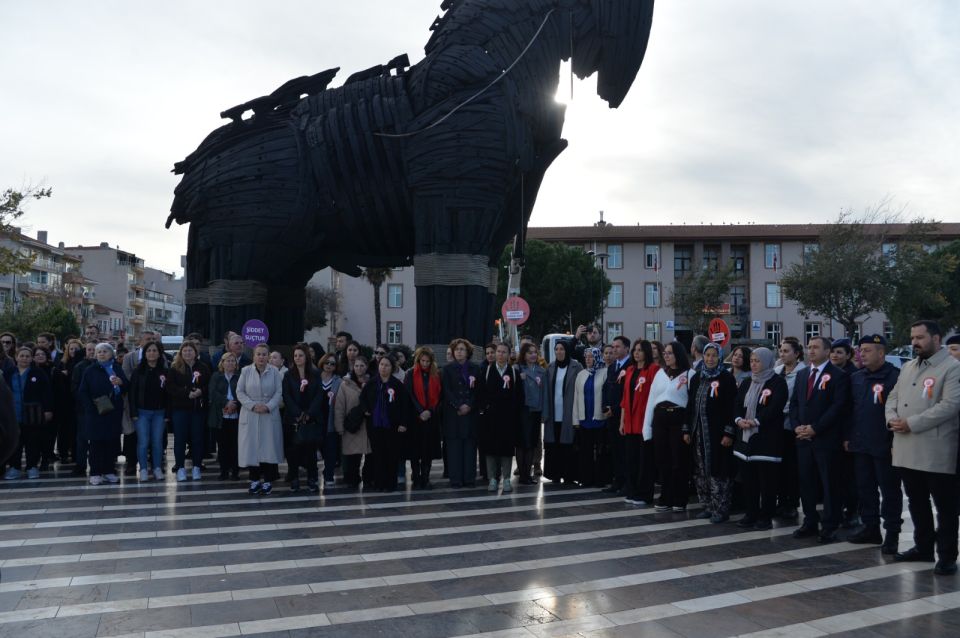 Truva Atı önünde gerçekleştirilen basın açıklamasında kadına yönelik şiddetin yalnızca bireyi değil, toplumsal yapıyı da derinden etkileyen bir insan hakları ihlali olduğuna dikkat çekildi. Açıklamada şu önemli mesajlar vurgulandı: “Kadına yönelik şiddet, toplumsal barışa ve geleceğimize zarar veren ciddi bir sorun olup, devletimizin tüm kurumlarının ve toplumun ortak mücadelesiyle aşılacaktır. Kadına Yönelik Şiddetle Mücadele V. Ulusal Eylem Planı’nın (2026–2030) bugün kamuoyuyla paylaşılması, bu alandaki çalışmalarımıza yeni bir perspektif kazandıracaktır.”