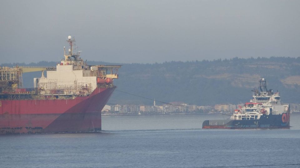 İngiltere’den Yalova’ya gitmek üzere yola çıkan ve dev bir FPSO, yani yüzer üretim, depolama ve boşaltma gemisi olarak hizmet veren ‘GRYPHON A’ isimli gemi, Çanakkale Boğazı güneyinden saat 08.45’te geçiş yaptı. Devasa boyutları ve üretim kapasitesiyle dikkat çeken gemi, boğazdan geçişi sırasında vatandaşların ilgisini çekti.