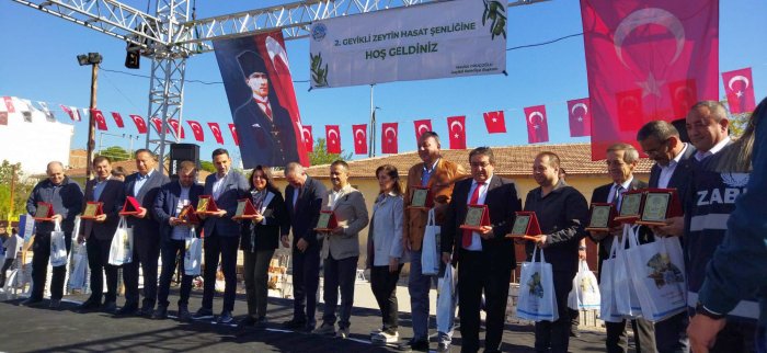 Ezine`ye bağlı Geyikli beldesinde zeytin hasadı şenlikle başladı. Geyikli Belediyesi, Ezine Kaymakamlığı, İl Tarım ve Orman Müdürlüğü, Çanakkale Onsekiz Mart Üniversitesi, Ezine Ziraat Odası, Çanakkale Ticaret ve Sanayi Odası ve Çanakkale Ticaret Borsası koordinasyonunda gerçekleşen şenlik büyük ilgi gördü. 2.Geyikli Zeytin Hasat Şenliği`ne; Vali İlhami Aktaş ve eşi Songül Aktaş, Çanakkale Milletvekili Jülide İskenderoğlu, Ezine Belediye Başkanı Güray Yüksel, Geyikli Belediye Başkanı Mevlüt Oruçoğlu, AK Parti İl Başkanı Naim Makas, ÇOMÜ Ziraat Fakültesi Dekanı Murat Şeker, ÇOMÜ Gastronomi ve Mutfak Sanatları Bölüm Başkanı Ferah Özkök, İl Tarım ve Orman Müdürü Erdem Karadağ, Çanakkale Ticaret ve Sanayi Odası Başkanı Selçuk Semizoğlu, Çanakkale Ticaret Borsası Başkanı S.Kaya Üzen, Meclis Başkanı Abdullah Deniz, Meclis Başkan Vekili Aslı Akgül, Yönetim Kurulu Üyesi Ruhi Badem, ÇTSO Yönetim Kurulu Üyesi Volkan Temiz, Bayramiç Ziraat Odası Başkanı İsmail Pehlivan, Damızlık Koyun Keçi Yetiştiriciliği Birliği Başkanı Ferhan Savran, Çanakkale Profesyonel Aşçılar Derneği Başkanı Osman Demirci, kurum amirleri, STK temsilcileri, öğrenciler, üreticiler ve vatandaşlar da katıldı.