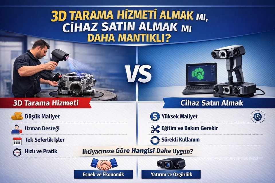 3D Tarama Hizmeti Almak mı, Cihaz Satın Almak mı Daha Mantıklı? sorusu, tasarım, üretim, tersine mühendislik veya arşivleme gibi alanlarda karar vermeniz gereken en kritik noktalardan biridir; bu yazıda maliyet analizinden iş hacmi ve kullanım sıklığına, kalite ve doğruluk kıyaslamalarından bakım, eğitim ve teknik destek gereksinimlerine kadar tüm önemli kriterleri ele alarak hangi durumda kiralamanın, hangi durumda ise cihaz yatırımı yapmanın daha mantıklı olduğunu pratik rehber niteliğinde açıklayacağız, böylece bütçeniz, projelerinizin yoğunluğu ve veri kontrolü ihtiyaçlarınız doğrultusunda bilinçli bir karar verebileceksiniz. Bu noktada, dış kaynak kullanımı kapsamında sunulan 3D Tarama Hizmeti seçenekleri, özellikle başlangıç aşamasındaki firmalar için önemli bir alternatif oluşturur.