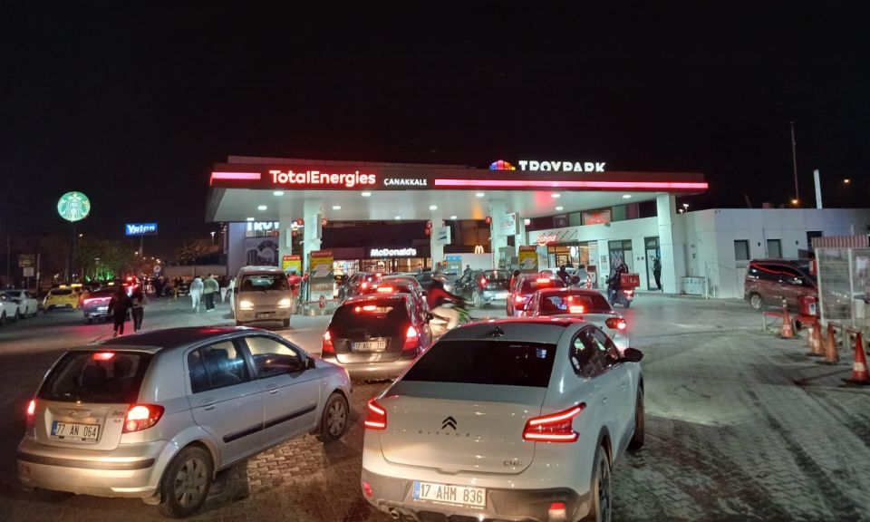 Kent merkezindeki Atatürk Caddesi, Troya Caddesi ve İzmir Yolu üzerindeki istasyonlarda, mesai bitimiyle birlikte yoğun trafik yaşandı. Akşam saatlerinde başlayan hareketlilik, uzun araç kuyruklarına dönüştü. Bazı istasyonlarda kuyruklar ana yola kadar uzanırken, trafik ekipleri geçişi sağlamak için devriye gezdi.