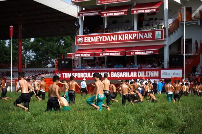 662. Tarihi Kırkpınar Yağlı Güreşleri minik boy pehlivanların güreşleriyle başladı. Organizasyonda 3 gün boyunca 53`ü başpehlivan 2 bin 141 pehlivan, rakibinin sırtını yere getirmek için mücadele verecek. Tarihi Sarayiçi Er Meydanı`nda kule hakemlerinin çağrısıyla sahaya gelen minik-1 boy pehlivanları, rakipleriyle kol bağlamaları sonrası peşreve çıktı. Sarayiçi`ndeki organizasyonun ilk gününde mücadeleler saat 18.00`deki resmi açılış törenine kadar sürecek.