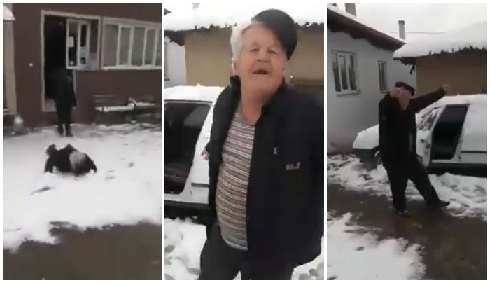 Balıkesir'in Sındırgı ilçesine bağlı Derecikören köyünde yaşayan 70 yaşındaki Celal Kırtay, uzun zaman sonra ilk kez yağan kar için adeta kutlama yaptı.
