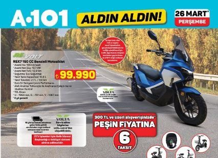 Son dönemde ulaşım maliyetlerinin artmasıyla birlikte motosikletlere olan ilgi katlanarak arttı. A101, bu talebe sessiz kalmayarak 26 Mart kataloğunda 150 cc Benzinli Motosiklet modeline yer veriyor. Şehir içi ulaşımda büyük kolaylık sağlayan, yakıt cimrisi ve şık tasarımıyla öne çıkan bu motosiklet, uygun taksit seçenekleriyle satışa sunulacak. Hem işe gidiş gelişlerde hem de hobi amaçlı kullanımlarda tercih edilebilecek bu ürünün, sınırlı stoklarla geleceği tahmin ediliyor.