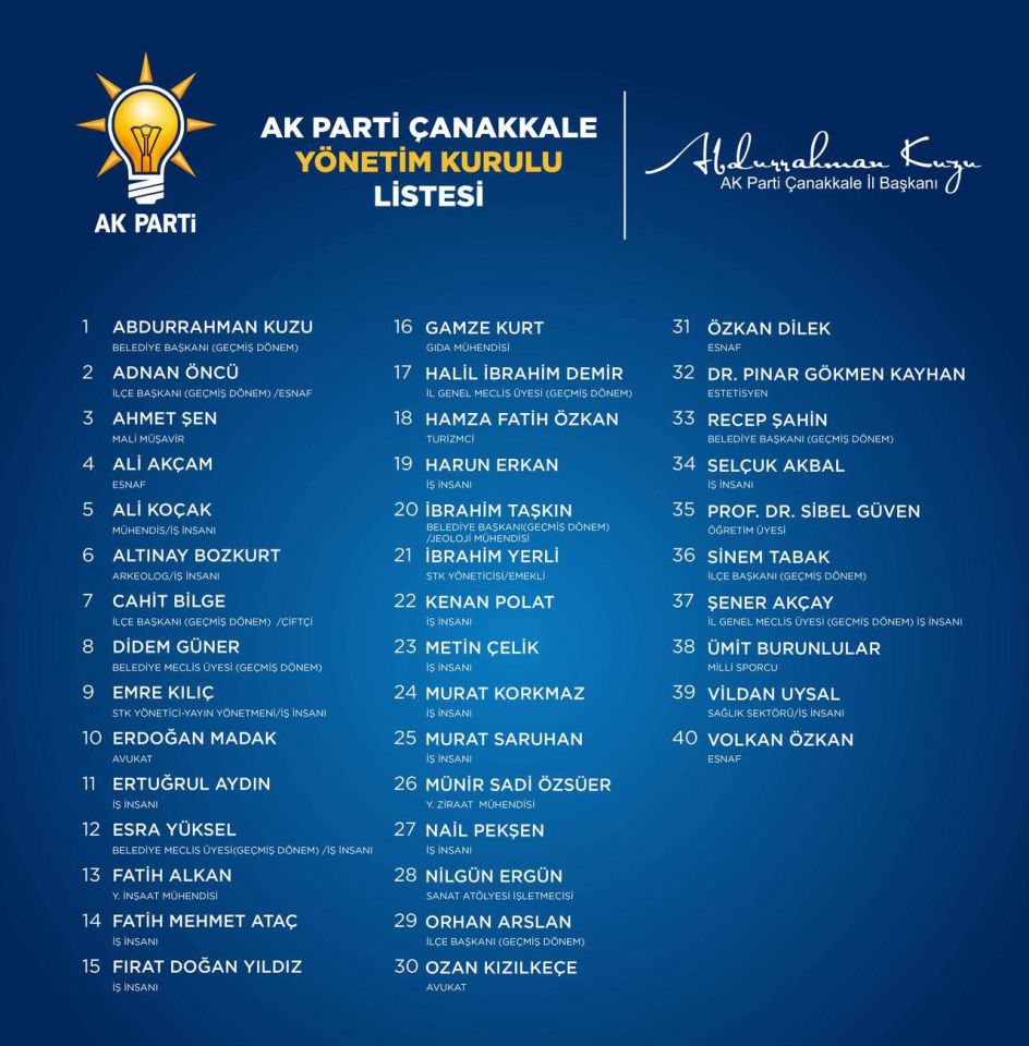 AK PARTİ ÇANAKKALE YÖNETİM KURULU LİSTESİ