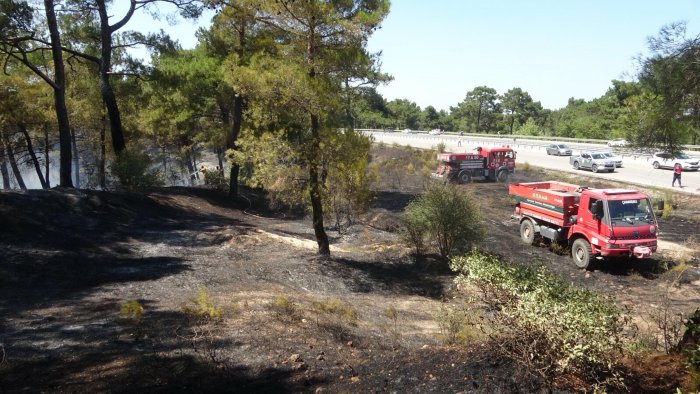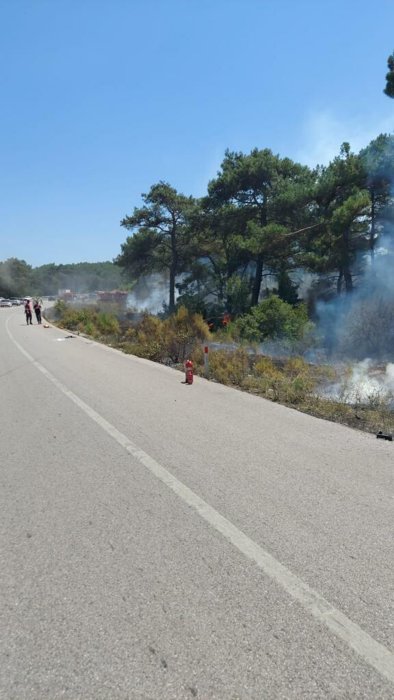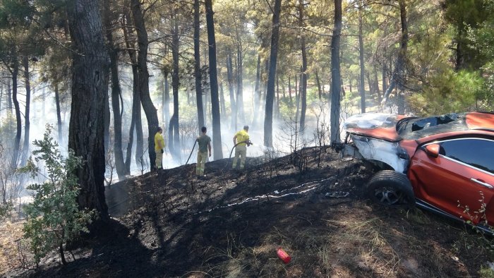 Ayvacık'ta, bariyere çarpıp, ormana dalan otomobil alev aldı. Ormana da sıçrayan alevler havadan ve karadan müdahaleyle yaklaşık bir saatte kontrol altına alındı. Otomobildeki yaralı 3 kişi ise hastaneye kaldırıldı.