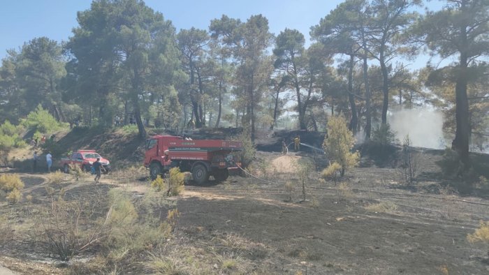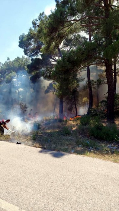 Alev alan otomobile ilk müdahale yangın tüpleriyle yapıldı. Ancak alevler buna rağmen ormana da sıçradı. Haber verilmesiyle bölgeye Çanakkale Orman Bölge Müdürlüğü`ne ait 2 helikopter, 12 arazöz, çok sayıda iş makinesi ve orman işçisi sevk edildi. Alevler havadan ve karadan müdahaleyle 1 saatte kontrol altına alındı. İlk belirlemelere göre 3 dönüm ormanın zarar gördüğü belirtilirken, soğutma çalışması başlatıldı.