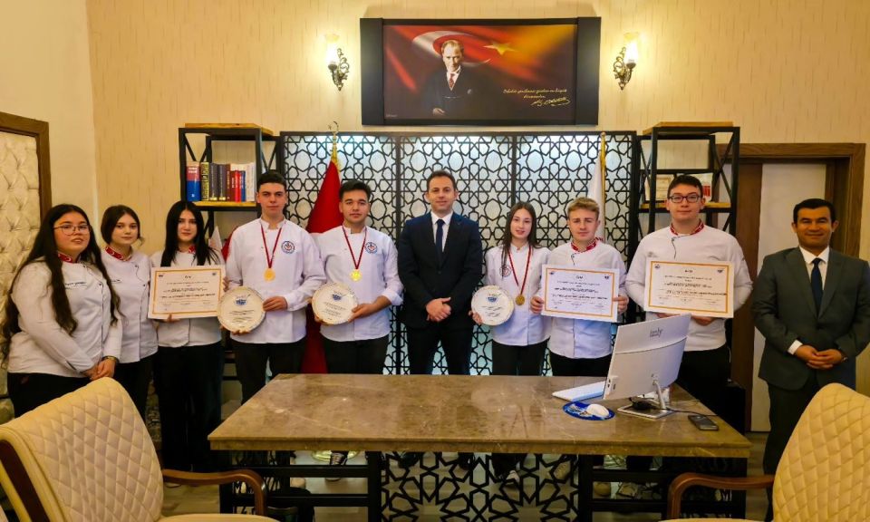 Gelibolu İlçe Milli Eğitim Müdürü Kadir Aydın, 17–20 Aralık 2025 tarihleri arasında İstanbul’da düzenlenen 22. Uluslararası İstanbul Mutfak Günleri Festivali kapsamında gerçekleştirilen JP5 Liseler Arası Modern Türk Mutfağı Ekip Yarışması’nda Altın Madalya kazanan Atatürk Mesleki ve Teknik Anadolu Lisesi yönetici, öğretmen, şef ve öğrencilerini makamında ağırladı.