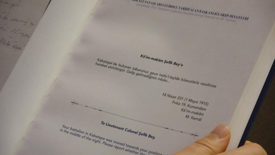 Kitapta, bu kapsamda hazırlanan ilk arşiv kataloğunda Cumhuriyet'in 101'inci yılı anısına Çanakkale Kara Muharebelerinin başladığı 25 Nisan 1915'ten itibaren Arıburnu'nda ve sonrasında da muharebeler sonlanana kadar Anafartalar'da harp hattında müthiş bir savunma örneği veren Mustafa Kemal Atatürk'ün imzasını taşıyan emirler ve takrirler yer alıyor. Kitapta ayrıca 19'uncu Fırka Erkan-ı Harbiye Reisi Binbaşı İzzeddin Bey ile 27'nci Alay Kumandanı Mehmet Şefik Bey gibi Çanakkale'nin önemli komutanları imzasını taşıyan belgelerde yer alıyor. Kitap haline getirilen emirlerin yanı sıra PDF formatında kitap haline getirilmiş nüshalar, Tarihi Alan Başkanlığının internet ve web sayfasında da sergileniyor.