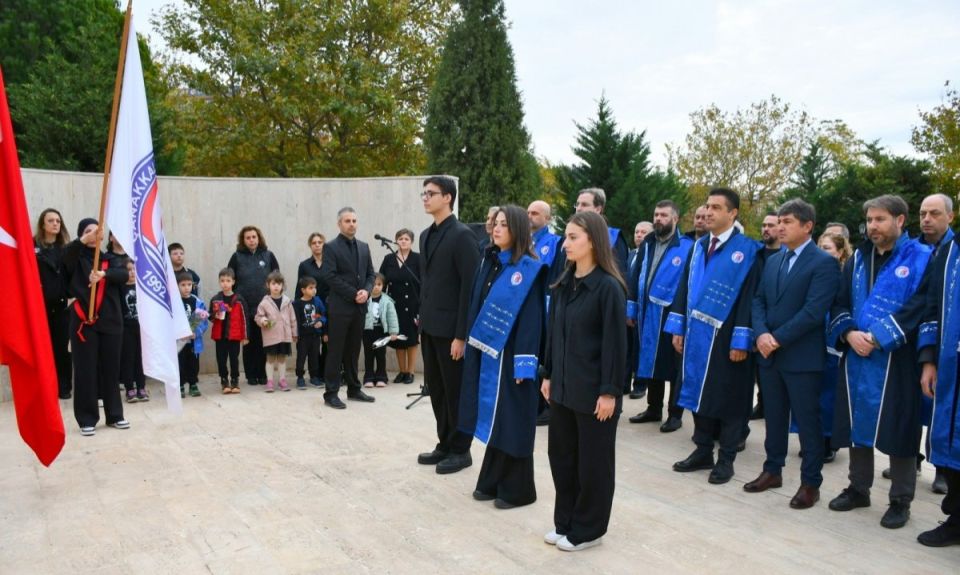 Terzioğlu Yerleşkesi’ndeki Bilim Anıtı önünde gerçekleşen törende; Rektör Yardımcıları Prof. Dr. Arda Aydın, Prof. Dr. Evren Karayel Gökkaya, Prof. Dr. H. Levent Dalyancı, Genel Sekreter Yardımcıları, akademik ve idari personel ile öğrenciler yer aldı.