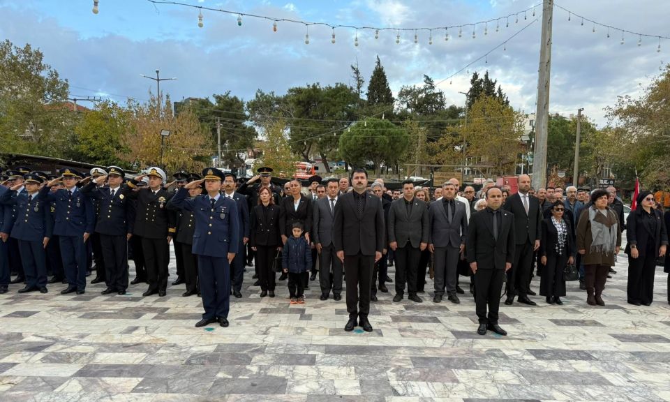 Ayvacık’ta 10 Kasım Atatürk’ü Anma Günü dolayısıyla düzenlenen çelenk sunma töreni ve anma programına Kaymakam Mustafa Karali, Ayvacık Belediye Başkanvekili Muhsin Tunçaltan, ilçe protokolü, öğrenciler ve vatandaşlar katıldı.