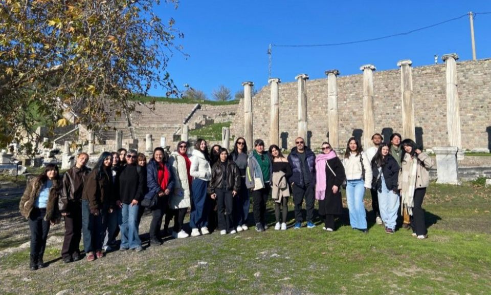 Gezi programında Bergama Akropolisi’nin görkemli yapısı, antik dönemin önemli sağlık merkezlerinden biri olan Asklepion’un şifa geleneği ve Efes Antik Kenti’nin dünya çapında bilinen mimarisi rehberlik perspektifiyle değerlendirildi. Geleceğin turist rehberleri olarak sahada deneyim kazanan öğrenciler, antik kentlerin tarihsel, arkeolojik ve kültürel dokusunu birebir gözlemleme fırsatı yakaladılar.