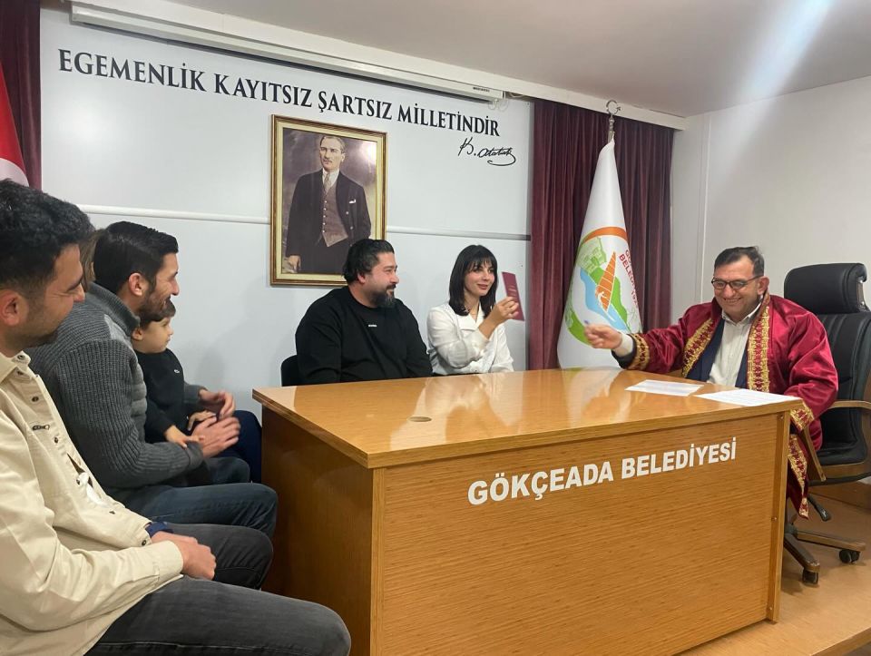 Gökçeada’da anlamlı bir nikâh töreni gerçekleştirildi. Gökçeada Belediye Başkanı Bülent Ecevit Atalay, Suna Umutlu ile Behzat Yapıcı’nın nikâh akdini gerçekleştirerek genç çiftin mutluluğuna ortak oldu.