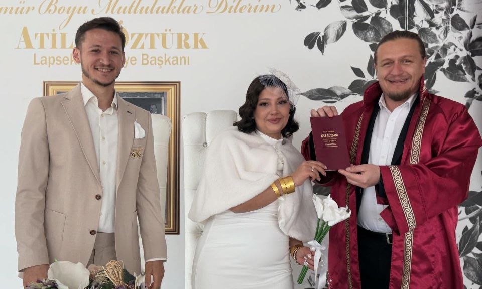 Genç çiftin nikah törenine katılan Lapseki Belediye Başkanı Atilla Öztürk, nikah akdini bizzat gerçekleştirdi. Şahitler ve davetliler huzurunda atılan imzaların ardından Başkan Öztürk, evlilik cüzdanını genç çifte takdim ederek bu özel günlerinde yanlarında oldu.
