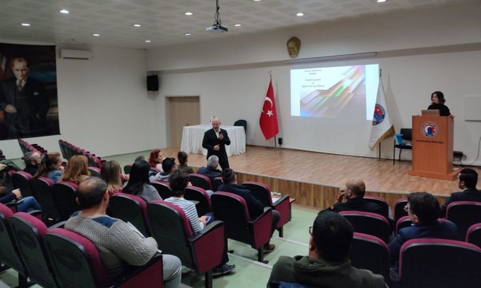 Çanakkale Onsekiz Mart Üniversitesi Bayramiç Meslek Yüksekokulu Konferans Salonu’nda, 19 Aralık 2025 tarihinde Stratejik Eğitim Koordinatörlüğü tarafından akademik personele yönelik atölye çalışması düzenlendi. “Akademik Gelişim Programı: Etkili Ders Tasarımı ve İzlence Hazırlama Atölyesi” başlığıyla gerçekleştirilen etkinlik, ÇOMÜ Eğitim Fakültesi Eğitim Bilimleri Bölümü akademisyenleri Prof. Dr. Ercan Kiraz ve Dr. Seval Bircan Yılmaz Yıldız tarafından yürütüldü.
