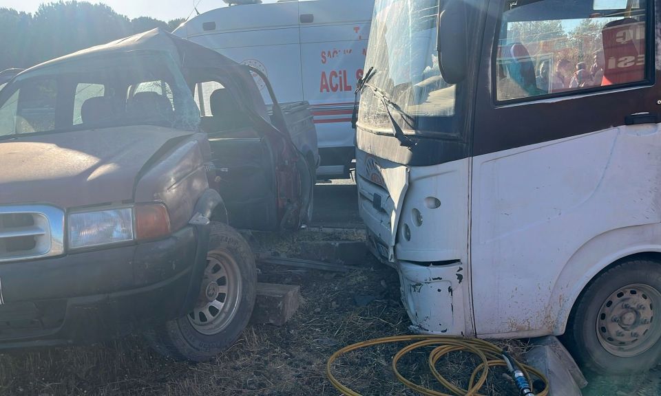AAY 690 plakalı işçi minibüsüyle Bayramiç istikametinden gelen