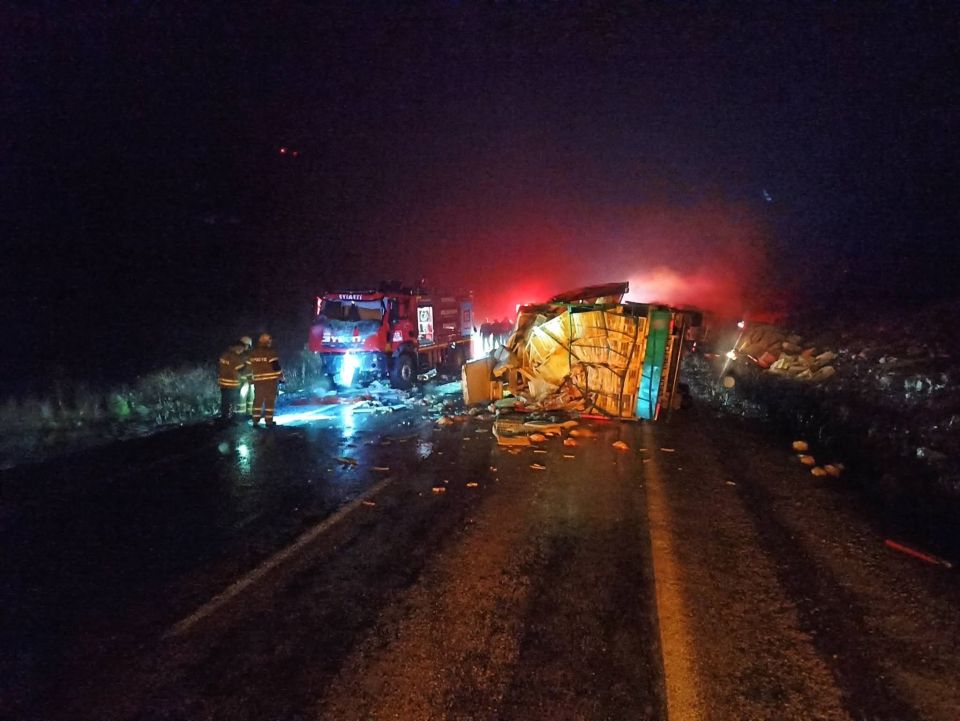 yüklü tırın sürücüsü direksiyon hakimiyetini kaybetti. Kazayı