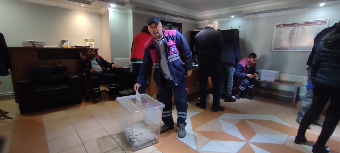 Çanakkale Belediyesi`nde örgütlü Devrimci İşçi Sendikaları Konfederasyonu`na bağlı (DİSK) Genel İş Sendikası üyesi işçiler sendika binasında kurulan sandıklarda grevi oyluyor. Ocak ayından bu yana yürütülen toplu iş sözleşmesi görüşmelerinde sendika-belediye uzlaşması sağlanamayınca belediye işçileri grev için sandık başına gitti.