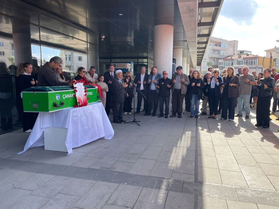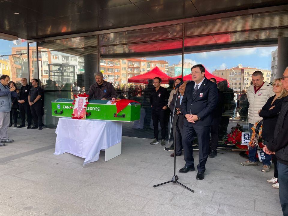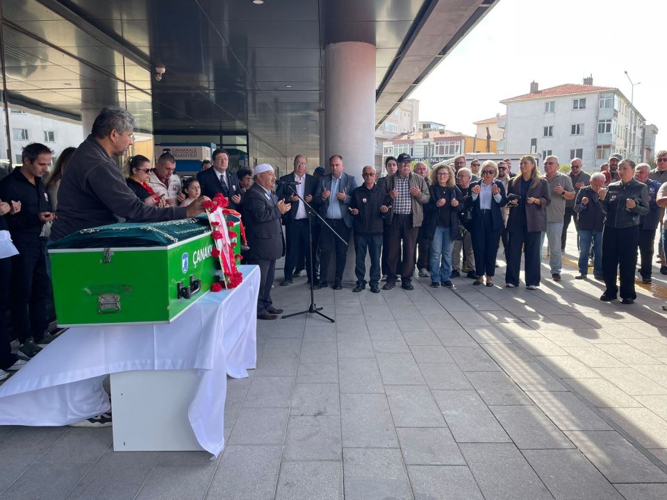 Erkek “Çok sevilen birini uğurluyoruz bugün. Emekli olduğu zamanı hatırlıyorum. 2005'te emekli olmuştu. Ben de belediye meclis üyesiydim. 1977’de başlayıp, 28 yıl Çanakkale Belediyesi'nde su kanal müdürlüğünde, personel müdürlüğünde, yazı işleri müdürlüğünde, fen işleri müdürlüğünde hizmet vermiş, emek vermiş ve en son Grup İdare Amiriyken emekli olmuştu. Hatırlıyorum o emekliliğinde sarılmıştık. Çok özel birini uğurluyoruz bugün.