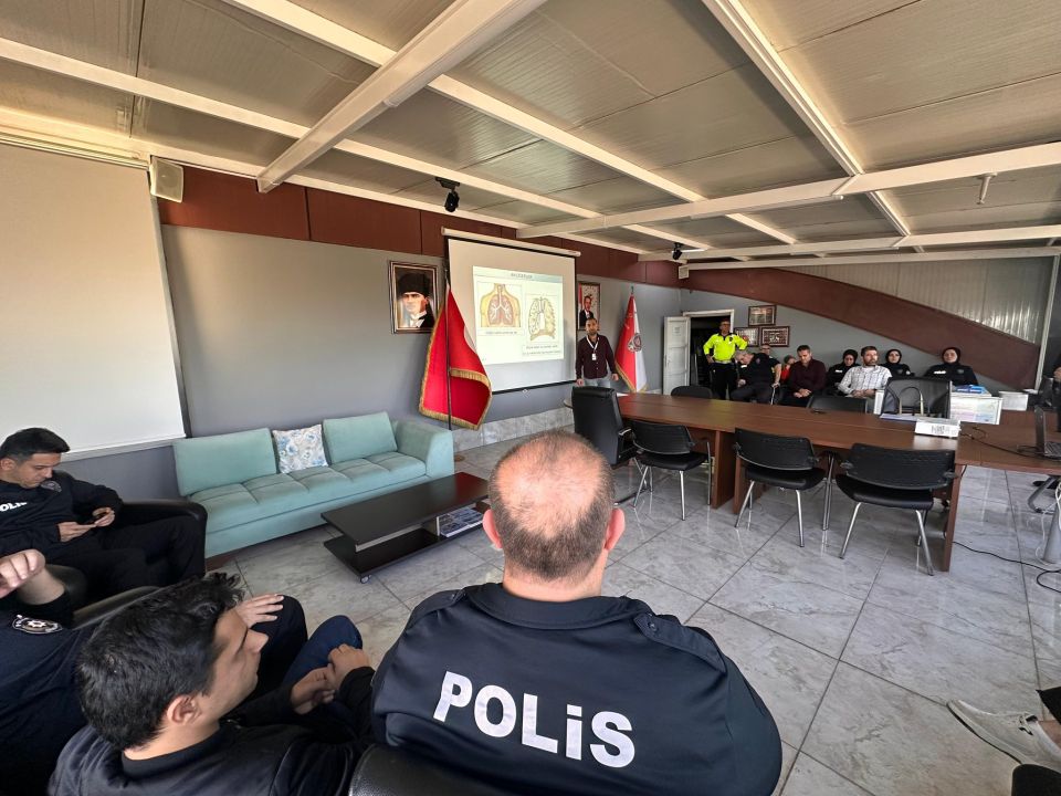 Akciğer Kanseri Farkındalık Ayı Etkinlikleri kapsamında Biga İlçe Sağlık Müdürlüğü Halk Sağlığı Uzmanı Dr. Duran Buran tarafından Biga İlçe Emniyet Müdürlüğü personellerine Akciğer Kanseri konusunda eğitim gerçekleştirdi.