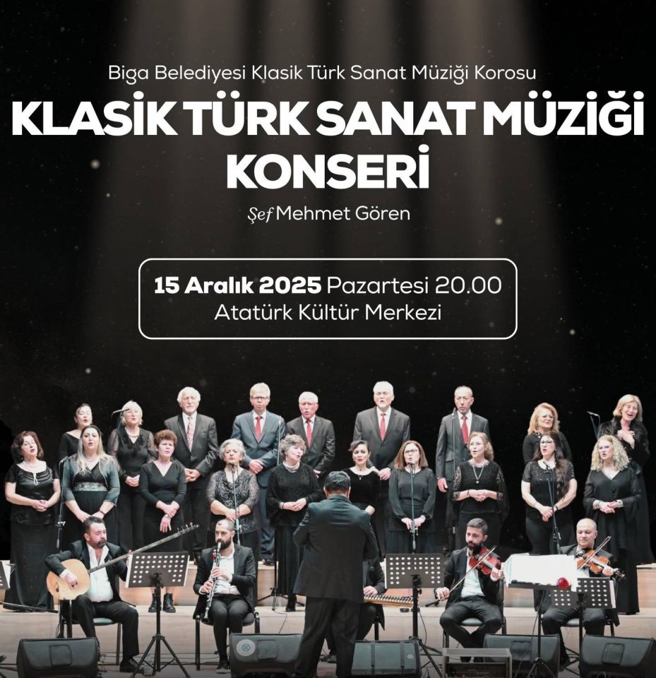 Biga Belediyesinden edinilen bilgiye göre Belediyenin Klasik Türk Sanat Müziği Korosu tarafından Türk Sanat Müziğinin en özel eserlerinden oluşan bir konser verilecek. Şef Mehmet Gören yönetiminde gerçekleştirilecek konser 15 Aralık 2025 Pazartesi akşamı Atatürk Kültür Merkezinde gerçekleştirilecek. Konserin başlama saati 20.00.