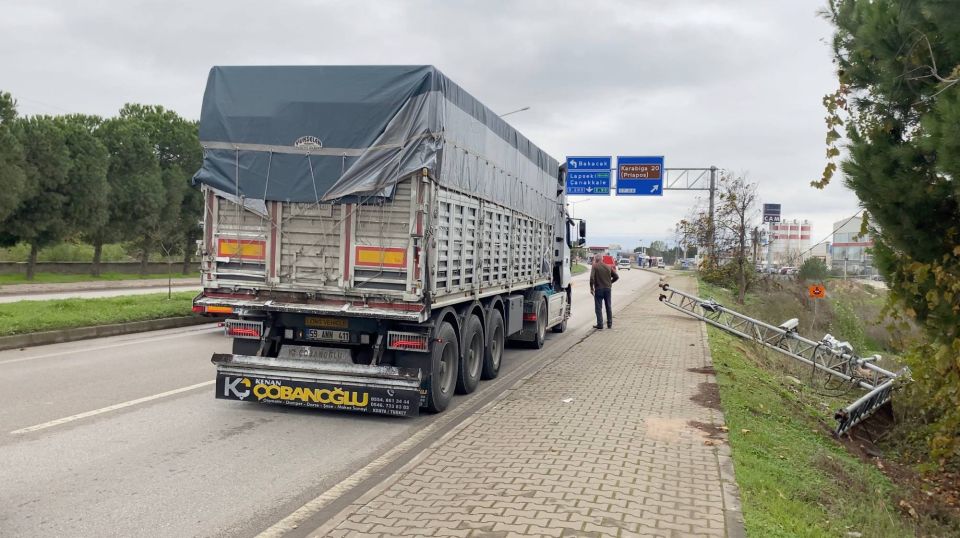 açılan dorsesi Biga çıkışındaki PTS'ye çarptı. Çarpmanın