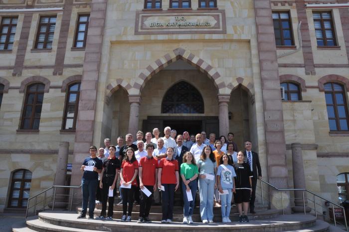 LGS'de, Biga genelinde ilk ona giren öğrenciler, başarılarını Biga Kaymakamı Erdinç Dolu ile paylaştı.