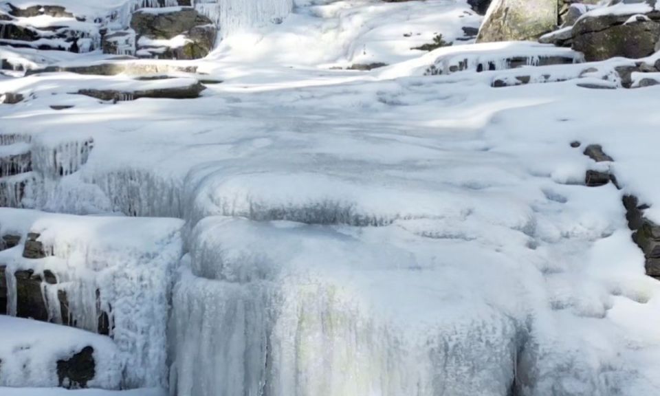 Çanakkale'de Kazdağları'nda -12 derece havada donan şelale görsel oluşturdu. Buz kaplı şelale dron ile görüntülendi.