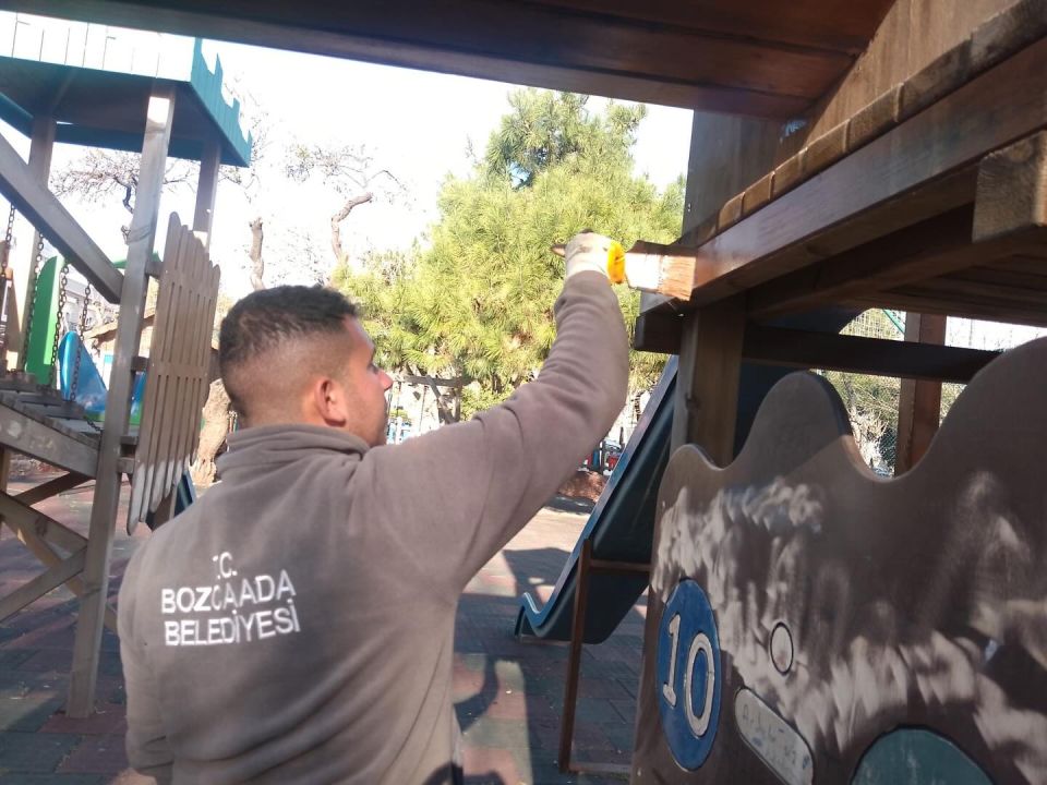 Çocuk parklarını yeni yıla daha temiz ve daha güvenli hale getirmek için çalışmalarını sürdüren Bozcaada Belediyesi ekipleri, parklardaki eksikleri gidererek; boyama çalışması gerçekleştirdi.
