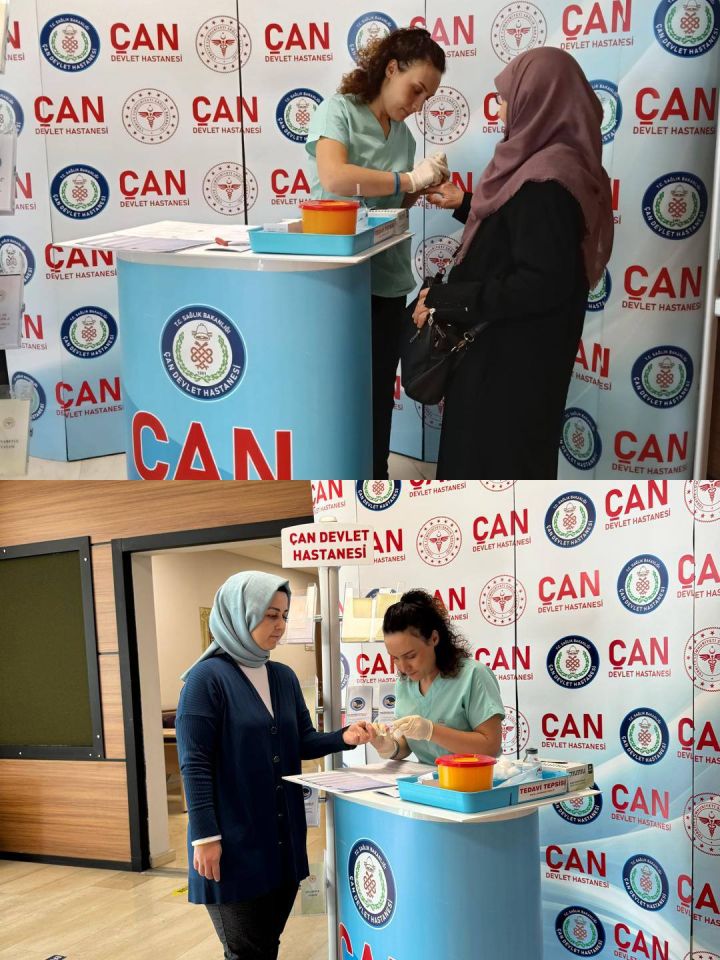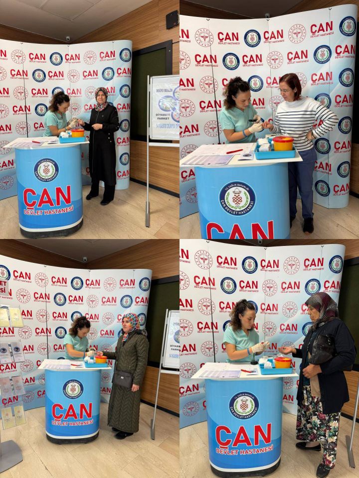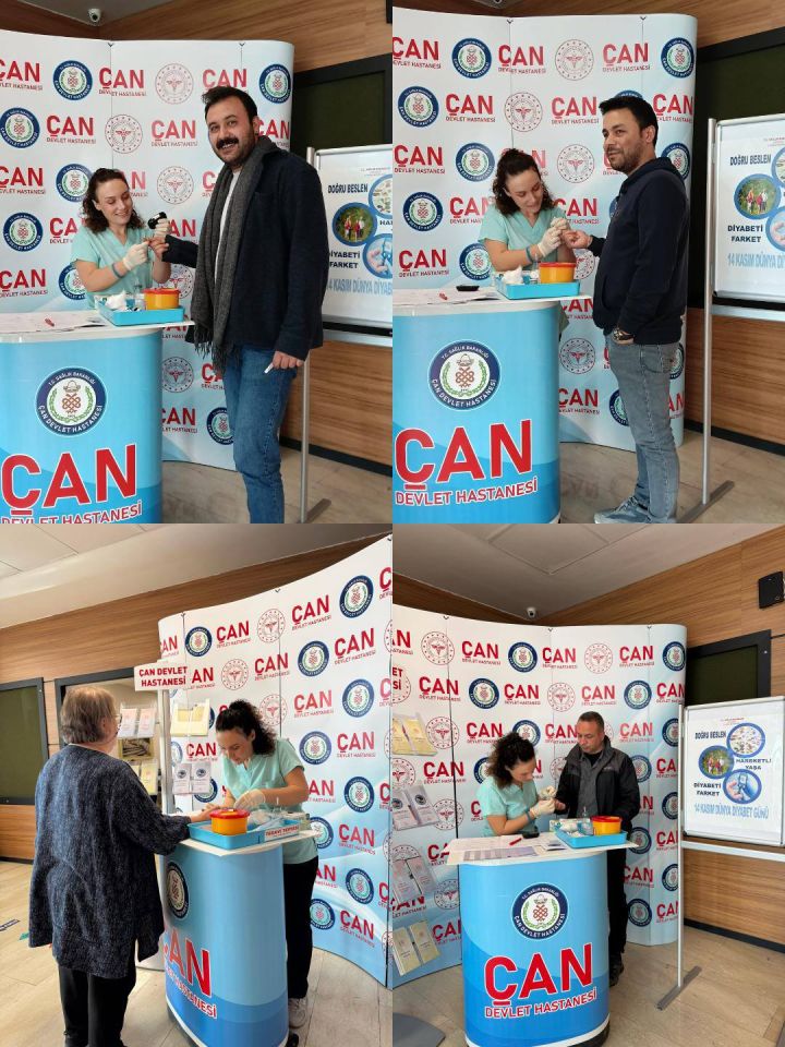 14 Kasım Dünya Diyabet Günü kapsamında Çan Devlet Hastanesi, bu yıl belirlenen tema olan “İşyerinde Diyabet” doğrultusunda hastane içinde farkındalık etkinliği gerçekleştirdi. Etkinlik kapsamında hem hastaneye başvuran vatandaşlara hem de hastane çalışanlarına kan şekeri ölçümü ve diyabet taraması yapıldı.