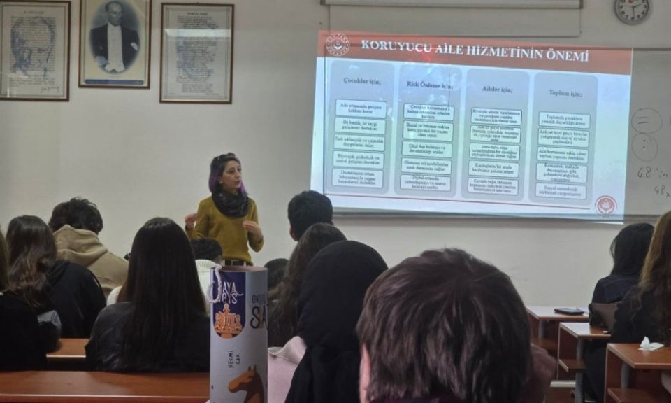 Etkinliğe, Çanakkale Aile ve Sosyal Hizmetler İl Müdürlüğü uzmanlarından Psikolog Hacer Ataseven ile Sosyal Hizmet Uzmanı Tuğçe Öztürk katıldı. Sunumlarında kadına yönelik şiddetin tanımını, şiddet türlerini, mağdurların başvurabileceği destek mekanizmalarını ve Türkiye’de uygulanan koruyucu ailelik sisteminin işleyişini detaylı biçimde aktardılar. Ataseven, şiddetin yalnızca fiziksel değil psikolojik, ekonomik ve dijital boyutlarının da bulunduğunu vurgulayarak, toplumun tüm bireylerinin bu konuda bilinçli olması gerektiğini ifade etti. Öztürk ise koruyucu ailelik modelinin çocukların gelişimi açısından önemine değinerek, başvuru süreçleri ve ailelere sağlanan devlet destekleri hakkında öğrencilere bilgi verdi.