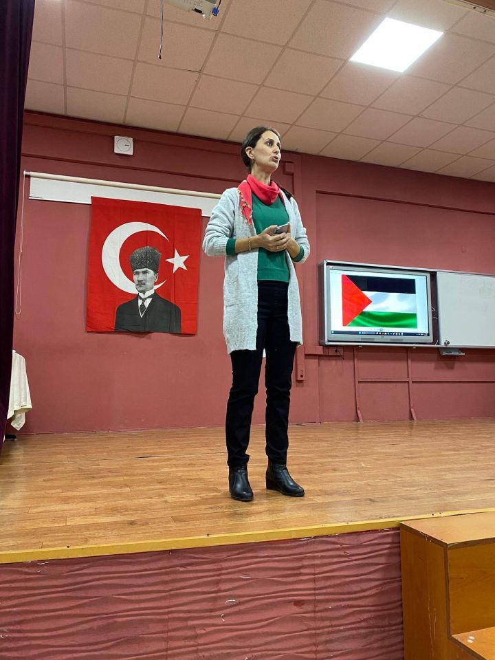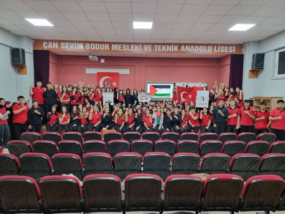 Çan Sevim Bodur Mesleki ve Teknik Anadolu Lisesi’nde, 7 Ekim 2025 tarihinde öğretmen ve öğrencilerin katılımıyla Filistin ve Gazze temalı farkındalık etkinlikleri gerçekleştirildi. Millî Eğitim Bakanı Yusuf Tekin’in 81 ilimize gönderdiği yazı doğrultusunda düzenlenen etkinlikte, okul konferans salonunda Filistin, Gazze ve Küresel Sumud Filosu hakkında belgesel gösterimi yapıldı.