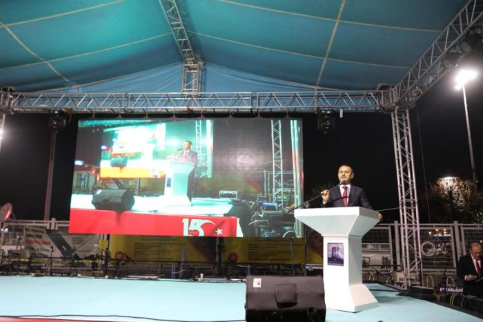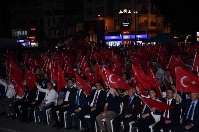 Saygı duruşu ve İstiklal Marşı`nın okunmasıyla başlayan 15 Temmuz Demokrasi ve Milli Birlik Günü programı, 15 Temmuz Demokrasi ve Milli Birlik Günü programında, "Demokrasi Bilinci, Elden Ele Taşınan Bir Bayrak Yarışıdır" sloganıyla 15 Temmuz Sancak Koşusunda sancağı taşıyan Milli Sporcu Ümit Burunlular ile Milli Sporcu Bülent Korkmaz tarafından sancak Vali İlhami Aktaş`a teslim edildi. Tacettin Aslan Camii Müezzin Kayyımı Metehan Dalman`ın Kuran-ı Kerim Tilaveti ve İl Müftü V. Mehmet Ali Bal`ın Şehitlerimiz için dua ettirmesiyle devam eden programda Vali İlhami AKTAŞ, günün anlam ve önemine ilişkin bir konuşma yaptı. Yapılan konuşmanın ardından Çanakkale Mehteran Derneğinin gösterisi izlendi. 15 Temmuz Demokrasi ve Milli Birlik Günü programında Cumhurbaşkanımız Sayın Recep Tayyip Erdoğan`ın Millete Sesleniş Konuşmaları, kurulan dev ekranlardan canlı olarak izlendi. Şehit Kıvanç Kaşıkçı İmam Hatip Ortaokulu öğrencileri Rıdvan Fidan tarafından 15 Temmuz Gecesi şiiri ve Büşra Aydın tarafından Bu Vatan şiiri okundu.