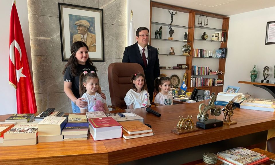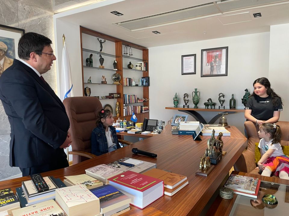 Çanakkale Belediye Başkanı Muharrem Erkek, 23 Nisan dolayısıyla makam koltuğunu Fen İşleri Müdürlüğü personeli Samet Uyanık’ın kızı Güneş’e teslim etti. Ziyarette minik başkanın kardeşleri Asya, Zeynep ve Cemre de yer aldı.