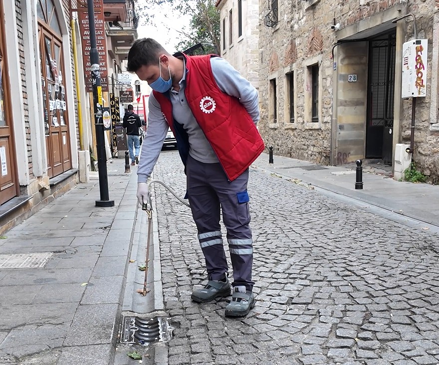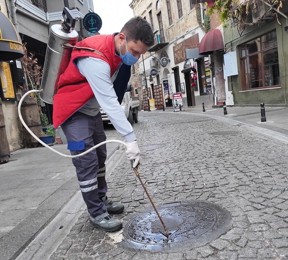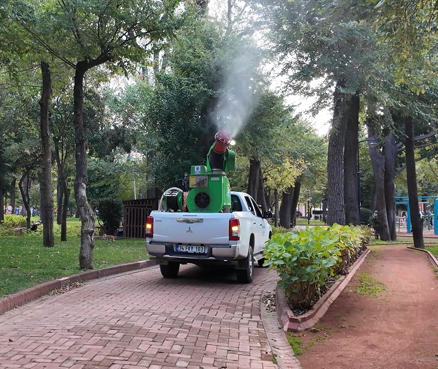 Hava sıcaklıklarının mevsim normallerinin üzerinde seyretmesi nedeniyle kent sağlığını korumaya yönelik düzenlenen çalışmalar kapsamında, Temizlik İşleri Müdürlüğü ekiplerince kent genelinde çöp konteynerleri yağmur suyu ve kanalizasyon hatlarına biyosidal ürün uygulaması gerçekleştiriliyor. Öte yandan uçkunla mücadele kapsamında da mist blower makinasıyla soğuk sisleme çalışmaları sürdürülüyor."
