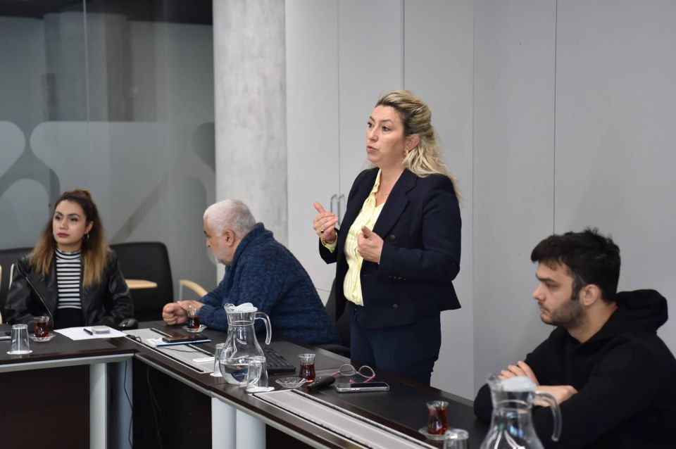 İklim Değişikliği ve Sıfır Atık Müdürü Aysun Kavcar tarafından verilen eğitimde, ilk olarak Çanakkale Bölgesel Katı Atık Yönetim Projesi ve bu projenin kent merkezi ile havzada uygulanan detayları paylaşıldı.
