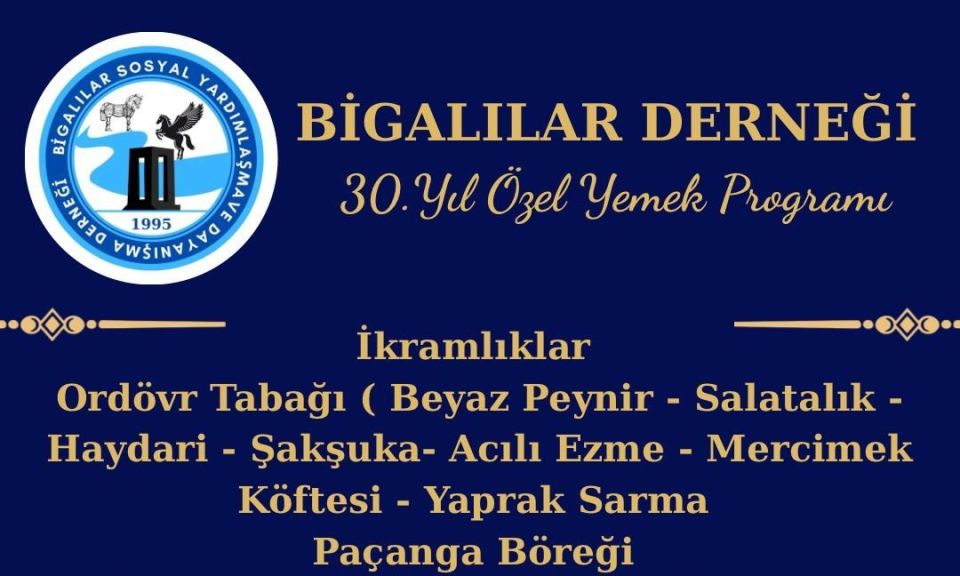 Başkan Ata, Çanakkale’de yaşayan tüm Bigalıları bu anlamlı gecede bir araya gelmeye davet ederek, “Omuz omuza verdiğimiz 30 yıllık bu çınarın gölgesinde, geçmişimize vefa göstermeyi ve geleceğe birlikte yürümeyi istiyoruz. Tüm hemşehrilerimizi 13 Aralık Cumartesi akşamı 286 Restaurant’ta düzenleyeceğimiz yemeğe bekliyoruz” dedi.
