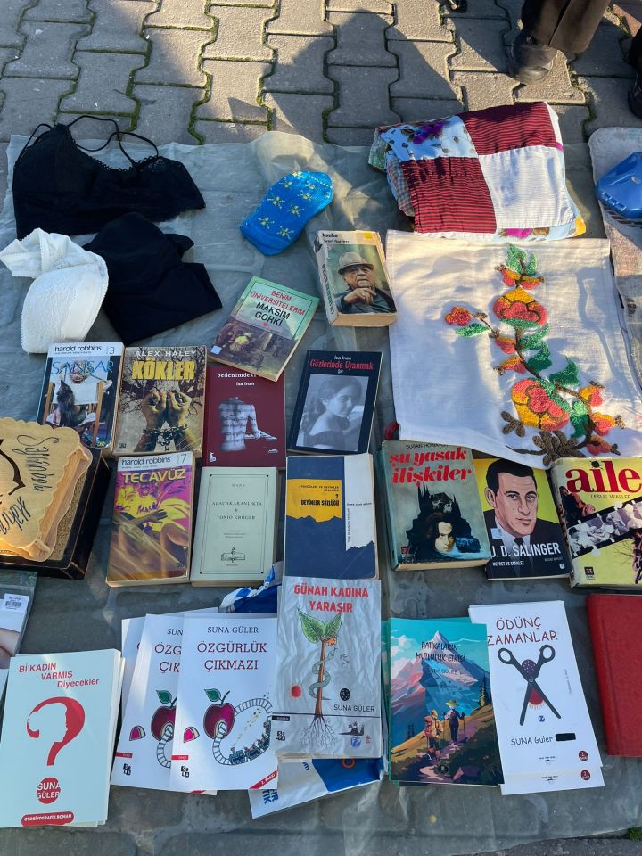 Örneğin bir de bakmışsınız, satıcılardan biri pek çok kitap yazmış bir yazar çıkabiliyor. Suna Güler, roman, öykü, makale, kitap eleştirisi, kitap yorumu, öykü çözümleme yazarı olan bir hanımefendi.