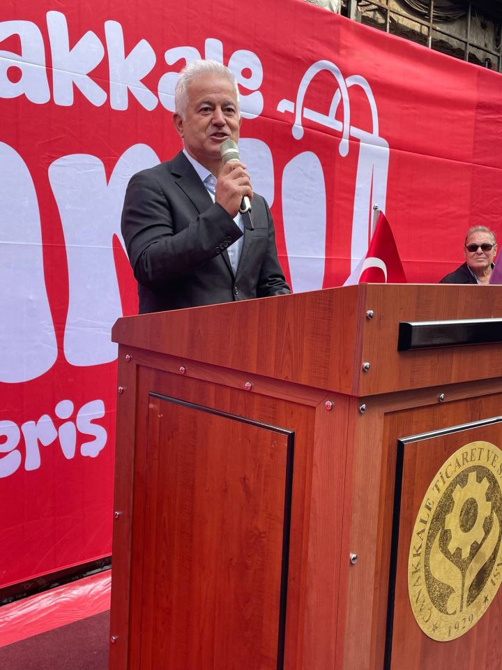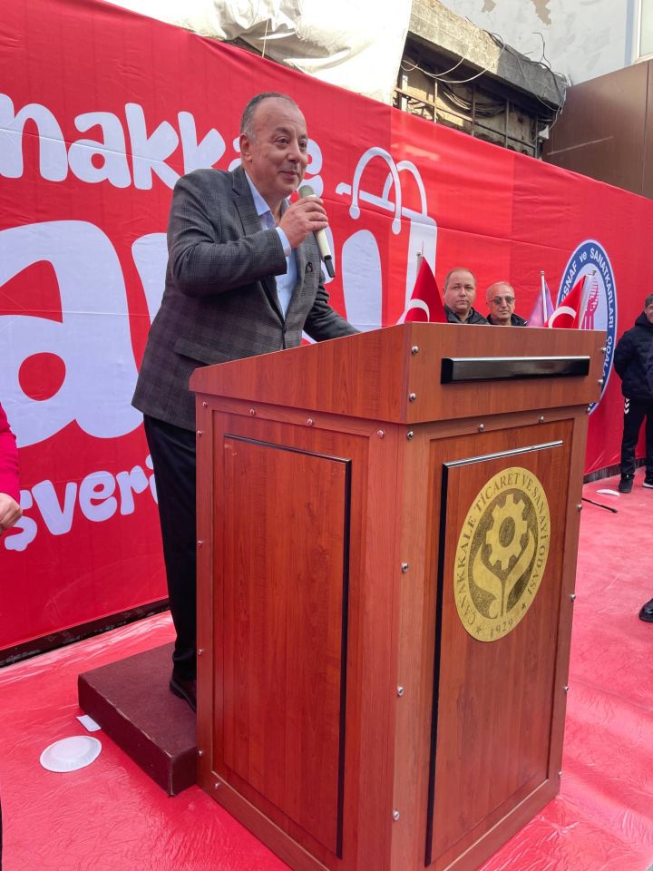 “Belediye Başkanımız Sayın Muharrem Erkek'in destekleriyle odamız ve Esnaf Sanatkârlar Odaları Birliğimizin işbirliği ile düzenlediğimiz Çanakkale Çarşı Alışveriş Günleri'ni bugün sizlerle birlikte başlatmaktan büyük mutluluk duyuyoruz. İnşallah sizlerin de katkılarıyla her yıl büyüterek sürdürülebilir bir şekilde devam ettirmeyi planlıyoruz.