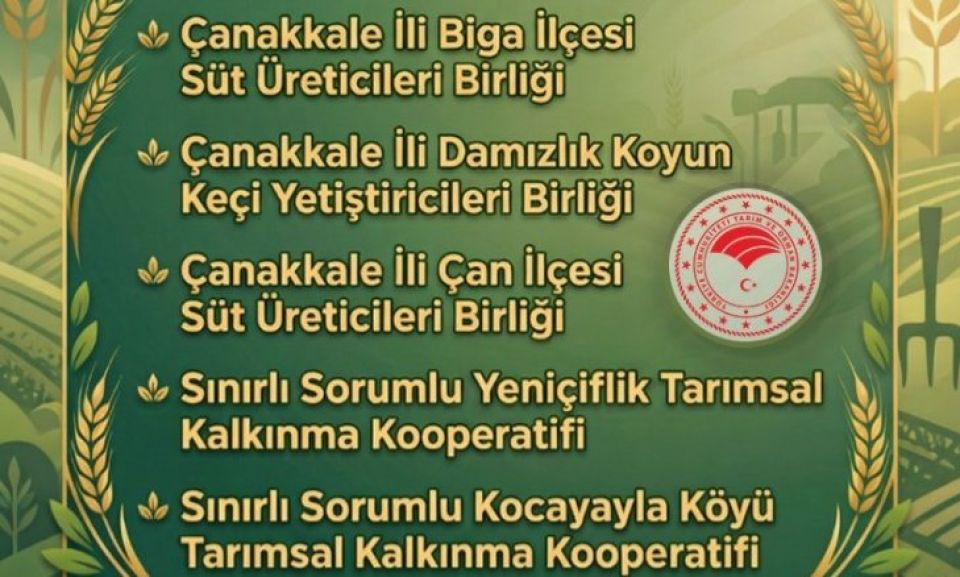 Yayınlanan listeyle birlikte Çanakkale’deki tarımsal amaçlı kooperatif ve birliklerin başarıları resmiyet kazanırken, söz konusu belgenin 1 Ocak 2026 – 31 Aralık 2026 tarihleri arasında geçerli olacağı belirtildi. Bu belgeye sahip örgütler, bir yıl boyunca çeşitli destekleme, kredi ve teşvik avantajlarından yararlanabilecek.
