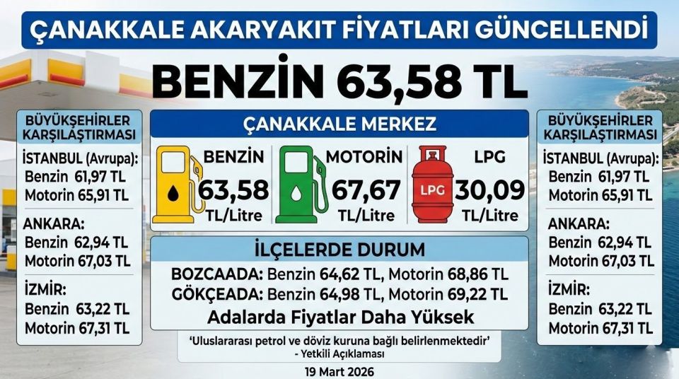 Motorin fiyatları da benzer şekilde ada ilçelerinde daha yüksek seviyelerde seyretti. Bozcaada’da motorin 68,86 TL, Gökçeada’da ise 69,22 TL olarak kaydedildi. LPG fiyatları ise tüm ilçelerde 30,09 TL seviyesinde sabit kaldı.